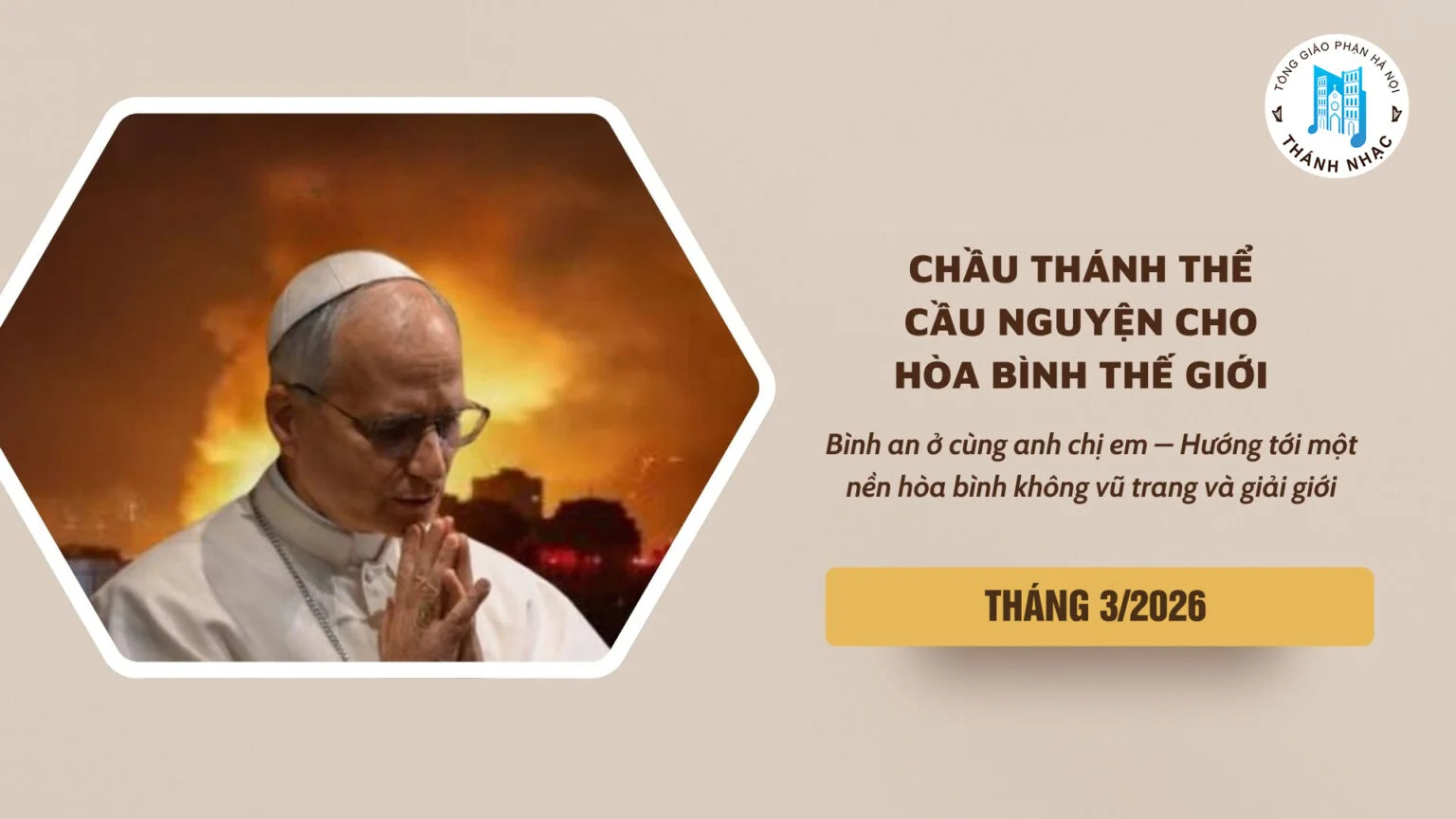 Thế giới hôm nay, hơn bao giờ hết, đang khát khao bình an của Đấng Phục Sinh soi chiếu tâm hồn những nhà lãnh đạo quốc gia, những người nắm giữ vận mệnh của các dân tộc, những nhà lãnh đạo tôn giáo và tất cả những người thiện chí. Những cuộc chiến vẫn tiếp diễn, những tiếng khóc của trẻ thơ, của người vô tội vẫn vang lên mỗi ngày như một lời chất vấn lương tâm nhân loại. Trong bối cảnh ấy, lời chúc “Bình an ở cùng anh chị em” không phải là một lời chào mang tính xã giao, nhưng là một lời mời gọi hoán cải sâu xa, đụng chạm đến tận căn nguyên của bạo lực và hận thù nơi lòng người. “Bình an mang nơi mình một sức mạnh hiền hòa, có khả năng soi sáng và mở rộng sự hiểu biết của chúng ta; bình an chống lại và vượt thắng bạo lực” .