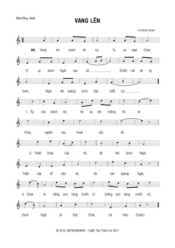 - Vị trí cho bài “Vang Lên”: Với giai điệu hào hùng, bài hát của Lm. Hoàng Kim vẫn là một lựa chọn tuyệt vời cho phần Ca Nhập Lễ, Ca Hiệp Lễ hoặc Ca Kết Lễ để khơi gợi niềm vui chiến thắng tội lỗi.